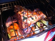 I firstly put knife holes into the lamb to allow me to put in garlic and rosemary. And also to allow the marinade to really get in there and do its work!