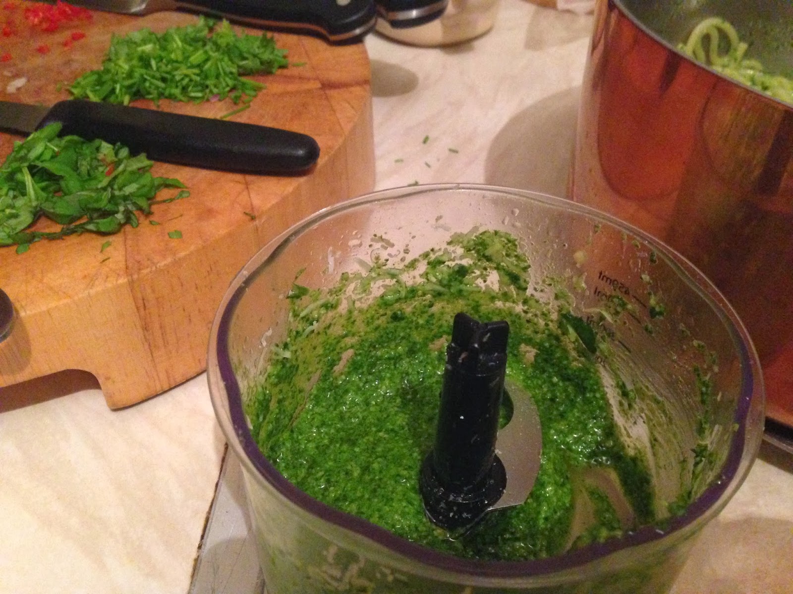 In the meantime whilst the fish is in the oven you then do the pesto.