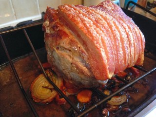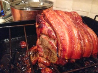 Roast British Pork Shoulder with spiced Cider Gravy: