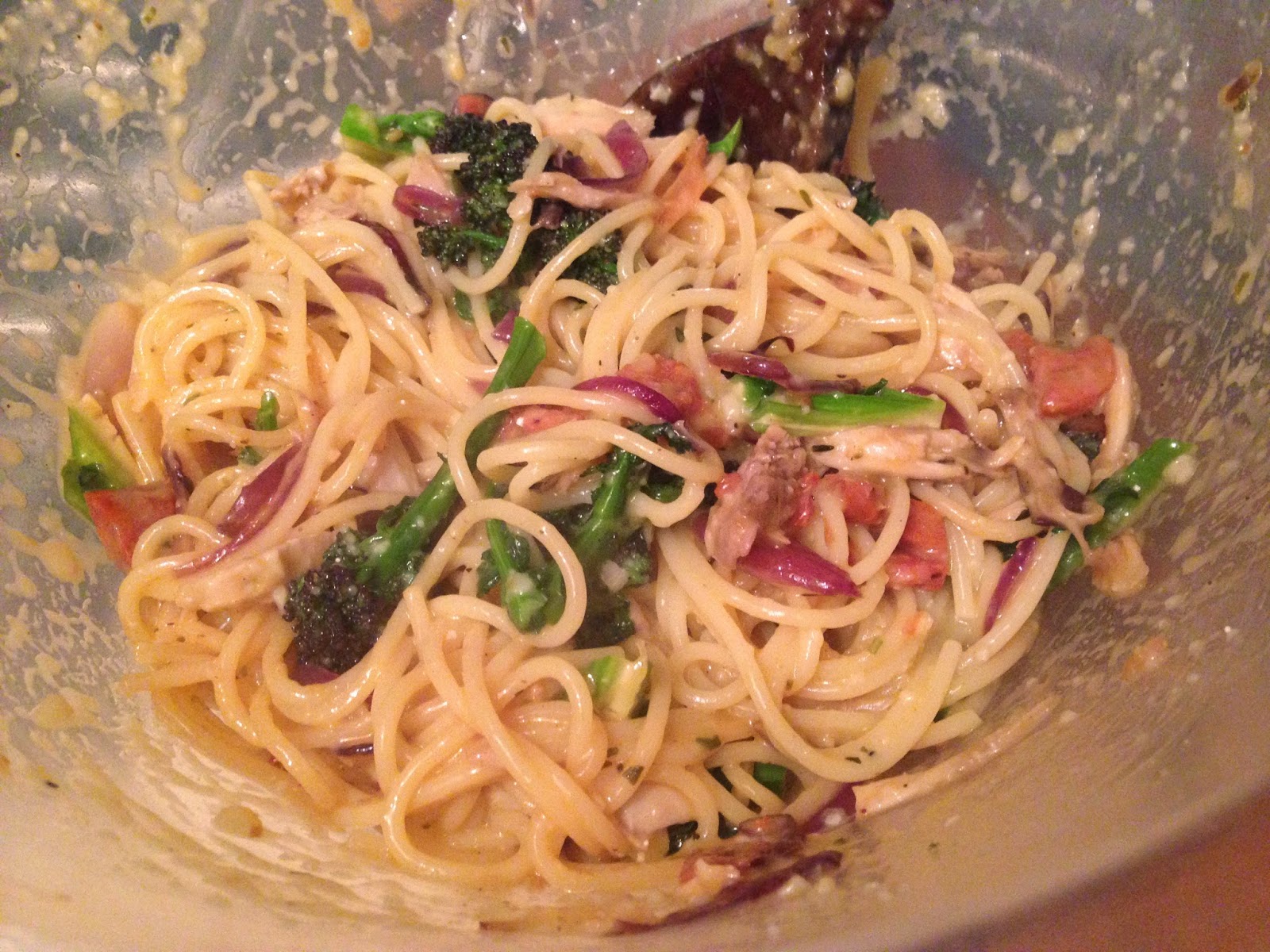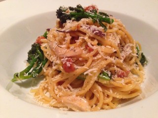 Chicken, Chorizo and Purple Sprouting Broccoli Carbonara: