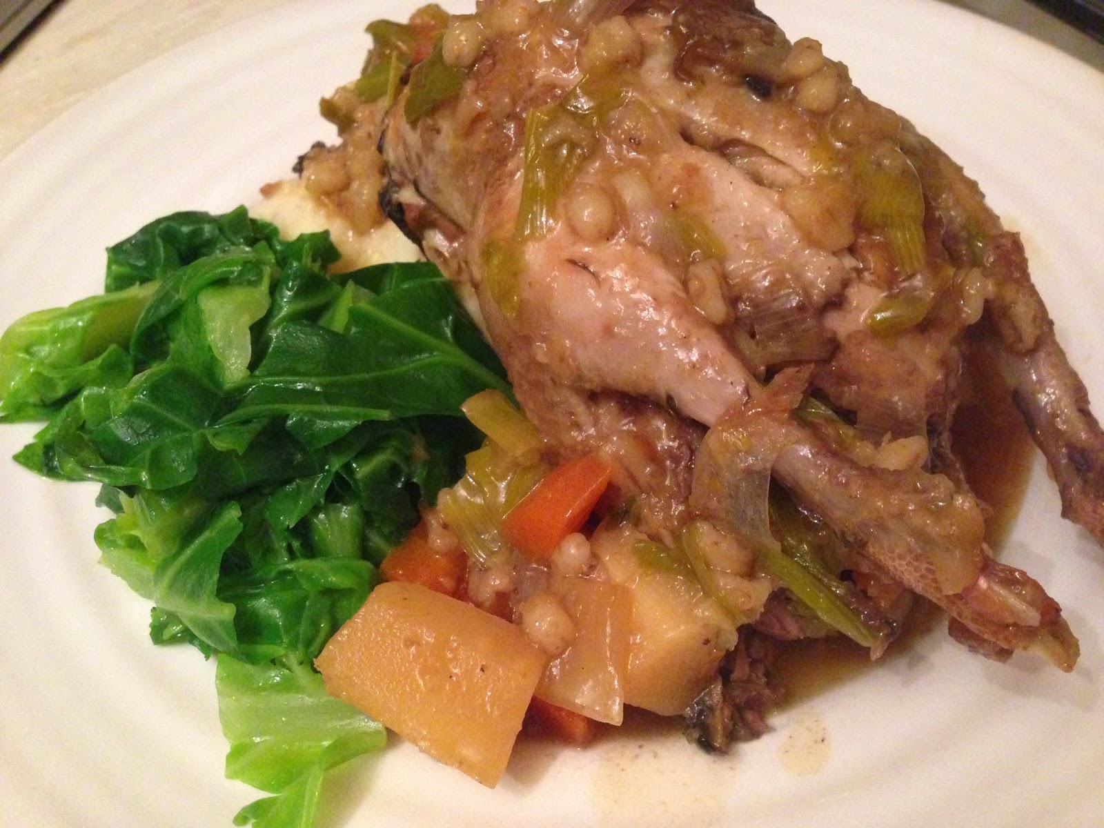 Pot Roast Partridge with Parsnips, Perry and Pearl Barley: