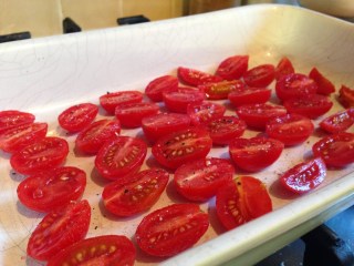 * Preheat your oven to 100c-120 c, depending on how powerful your oven is and size of tomato. For these tiny ones. Mine took just over an hour. Just keep checking them.