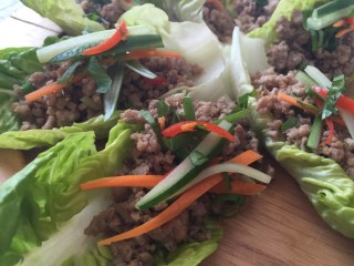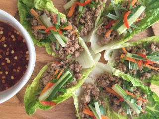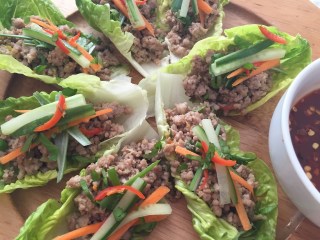 * Assemble your Pork mince into the lettuce cups, garnish and serve with your sauce.