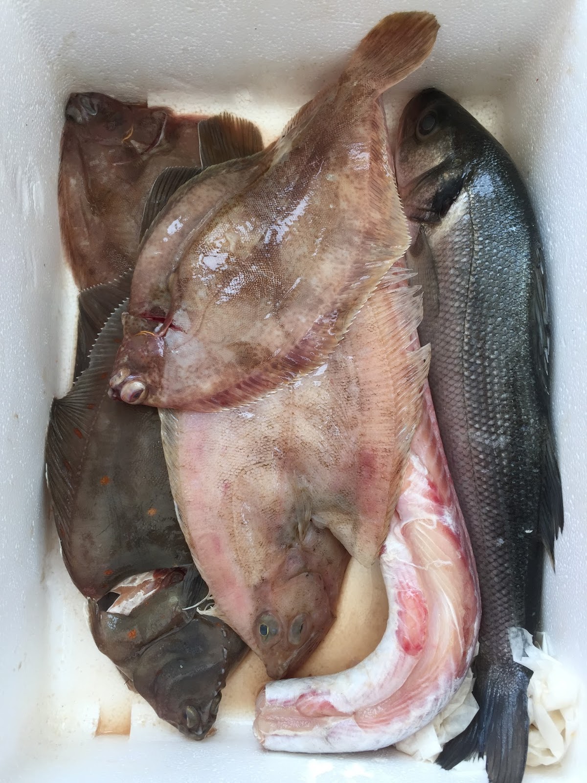 Selection of Fish including Flat fish such as Sole and Plaice. Sea bass and Eel