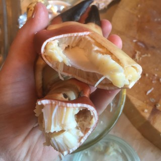 Next job was the best bit, picking out all the meat. It is pretty much impossible to not nibble on a bit whilst doing this. Always make sure you get into ALL of the claws, including the smaller ones as that has the sweeter meat in. Now you don’t have to have fancy tools to do this. I used a Corn on the cob end holder, a thin chopstick and the thin end of a teaspoon!